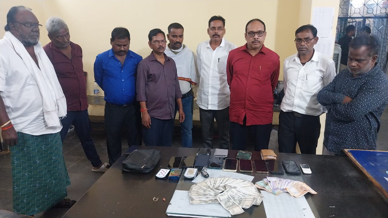 पुलिस ने मौके से ₹69,300 नगद, 03 कारें एवं 10 मोबाइल फोन जब्त किए हैं।