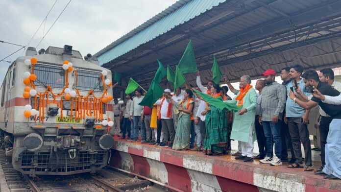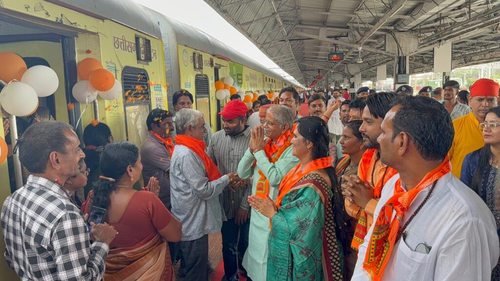 बिलासपुर। श्री रामलला दर्शन योजना के तहत बुधवार को बिलासपुर संभाग के श्रद्धालुओं को लेकर भारत गौरव ट्रेन अयोध्या धाम के लिए रवाना हुई। इस विशेष ट्रेन को बिल्हा विधायक धरमलाल कौशिक ने हरी झंडी दिखाकर रवाना किया। इस अवसर पर महापौर पूजा विधानी, जिला पंचायत अध्यक्ष राजेश सूर्यवंशी, जनप्रतिनिधि, जिला प्रशासन, छत्तीसगढ़ टूरिज्म बोर्ड के अधिकारी-कर्मचारी तथा रेलवे अधिकारी उपस्थित रहे।