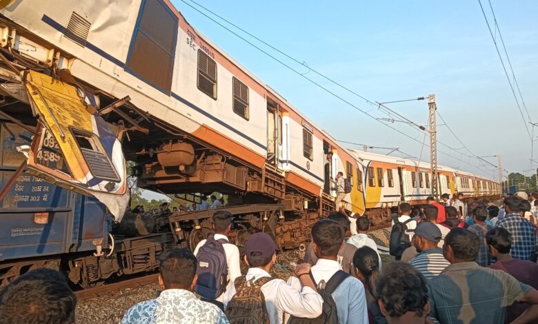 बिलासपुर। बिलासपुर रेल मंडल के तोरवा थाना क्षेत्र स्थित लालखदान के पास बड़ा रेल हादसा हो गया। कोरबा से बिलासपुर की ओर आ रही लोकल मेमू ट्रेन एक मालगाड़ी से टकरा गई। टक्कर इतनी जबरदस्त थी कि मेमू ट्रेन की एक बोगी मालगाड़ी के पिछले हिस्से पर चढ़ गई, जिससे यात्रियों में अफरा-तफरी मच गई।