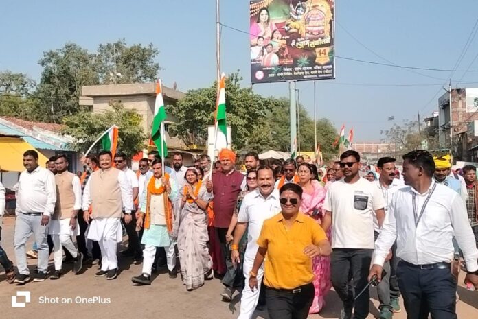 कार्यक्रम की शुरुआत राम मंदिर चौक से हुई, जहां उपस्थित अतिथियों ने भगवान श्रीराम की पूजा-अर्चना कर आशीर्वाद लिया। इस दौरान केंद्रीय मंत्री तोखन साहू, भाजपा ग्रामीण जिलाध्यक्ष मोहित जयसवाल, नगर पंचायत अध्यक्ष सरोज दुर्गेश साहू, उपाध्यक्ष प्रदीप कौशिक, जनपद पंचायत अध्यक्ष सूरज साधेलाल भारद्वाज, उपाध्यक्ष मनोहर सिंह राज, भाजपा मंडल अध्यक्ष बजरंग जयसवाल, महामंत्री नीलेश भार्गव और सुलेश पांडेय सहित बड़ी संख्या में भाजपा कार्यकर्ता और स्थानीय नागरिक मौजूद रहे।