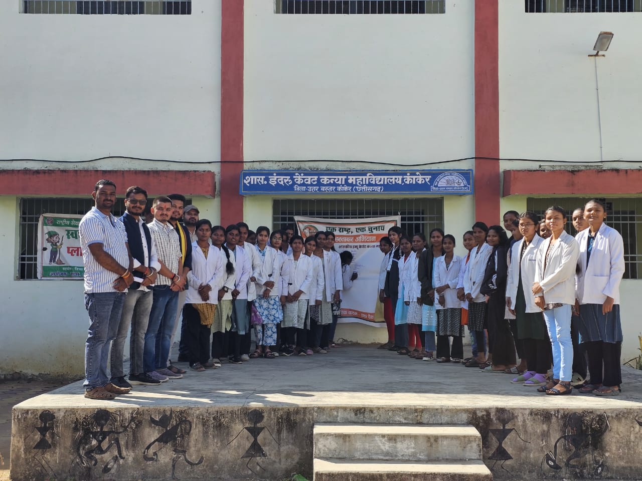 कांकेर । शासकीय इन्द्रू केवट कन्या महाविद्यालय में मंगलवार को “एक राष्ट्र एक चुनाव” के समर्थन में हस्ताक्षर अभियान चलाया गया। अभियान के दौरान विद्यार्थियों को इस विषय पर जागरूक करते हुए हस्ताक्षर के माध्यम से समर्थन देने के लिए प्रेरित किया गया।