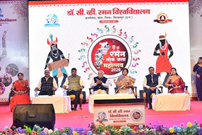 डॉ सीवी रमन विश्वविद्यालय मैं आयोजित रमन लोक कला महोत्सव लोक में राम के अवसर पर वैचारिक सत्र का आयोजन किया गया ।जिसमें छत्तीसगढ़ की लोक कला एवं लोकनाट्य विषय पर प्रसिद्ध रंग कर्मी एवं नाटक निदेशक राकेश तिवारी वरिष्ठ लोक कलाकार मंत राम यादव, देवार गीत गायिका रेखा देवार ने छत्तीसगढ़ की लोक कला एवं लोकनाट्य पर अपने विचार विस्तार से साझा किया.। इस अवसर पर उपस्थित डॉ सी वी रमन विश्वविद्यालय के कुलाधिपति एवं संस्कृति धर्मी संतोष चौबे ने कहा कि डॉक्टर सी वी रमन विश्वविद्यालय में जल्द ही धरोहर प्रोजेक्ट की शुरुआत होगी। जिसमें हम छत्तीसगढ़ के विभिन्न विधाओं को संरक्षित एवं संबोधित करने की दिशा में कार्य करेंगे लोक कलाकारों की कृतियां उनकी रचनाएं के समस्त विधाओं को लिपिबद्ध किया जाएगा ।साथी सभी विधाओं के डॉक्यूमेंटेशन तैयार किए जाएंगे यह कार्य पूरी छत्तीसगढ़ स्तर पर किया जाएगा उन्होंने यह भी बताया कि सेंटर फॉर ट्राईबल रिसर्च सेंटर भी डॉक्टर सीवी रमन विश्वविद्यालय में स्थापित होगा।